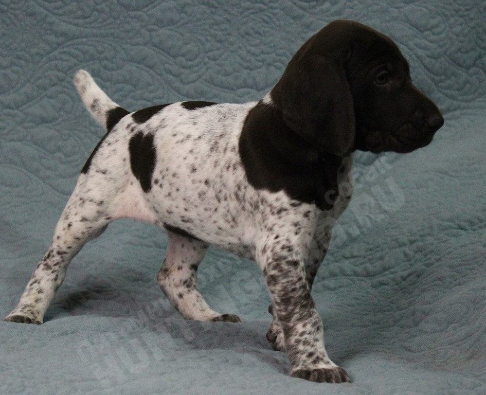 Перспективный породистый щенок ПРАДА из помета "П" породы дратхаар №3 сука ПРАДА vom ADLERHUGEL, цвет: черно-пегий, рождёна 25.05.2025 г. в нашем питомнике vom Adlerhügel от велико..
