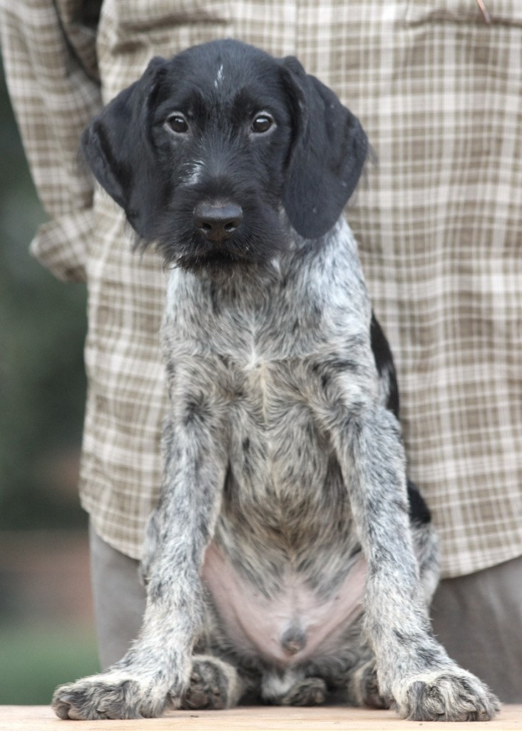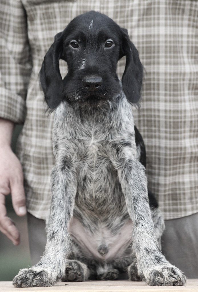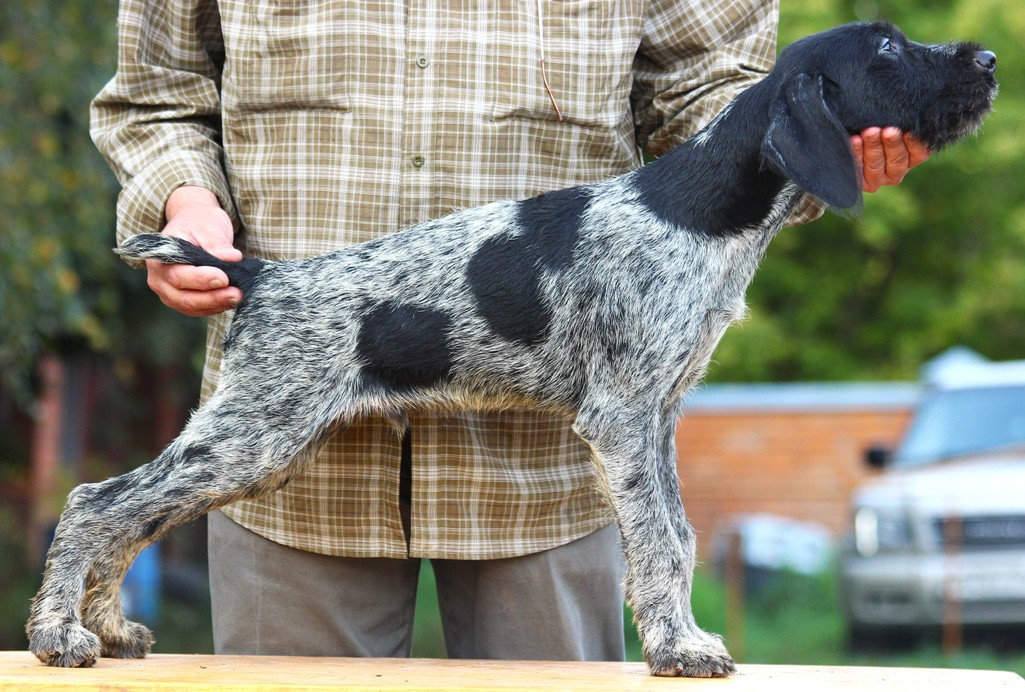 Породистый щенок из помета "П" породы дратхаар №4 кобель, цвет: черно-пегий, рождён 25.05.2025 г. в нашем питомнике vom Adlerhügel от великолепных родителей, одних из лучших представителей этой породы: BRAX III VOM LIETHER-MOOR (Бракс III фом Литер-Моор - Германия) и Valda (Вальда - Германия (выездная вязка) - Чехия), ведущих свои линии от собак из лучших питомников Германии и Чехии. Родители имеют отличный экстерьер, спокойный и дружелюбный характер,не агрессивны, прирожденные охотники!