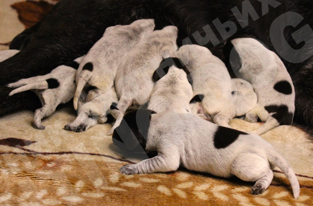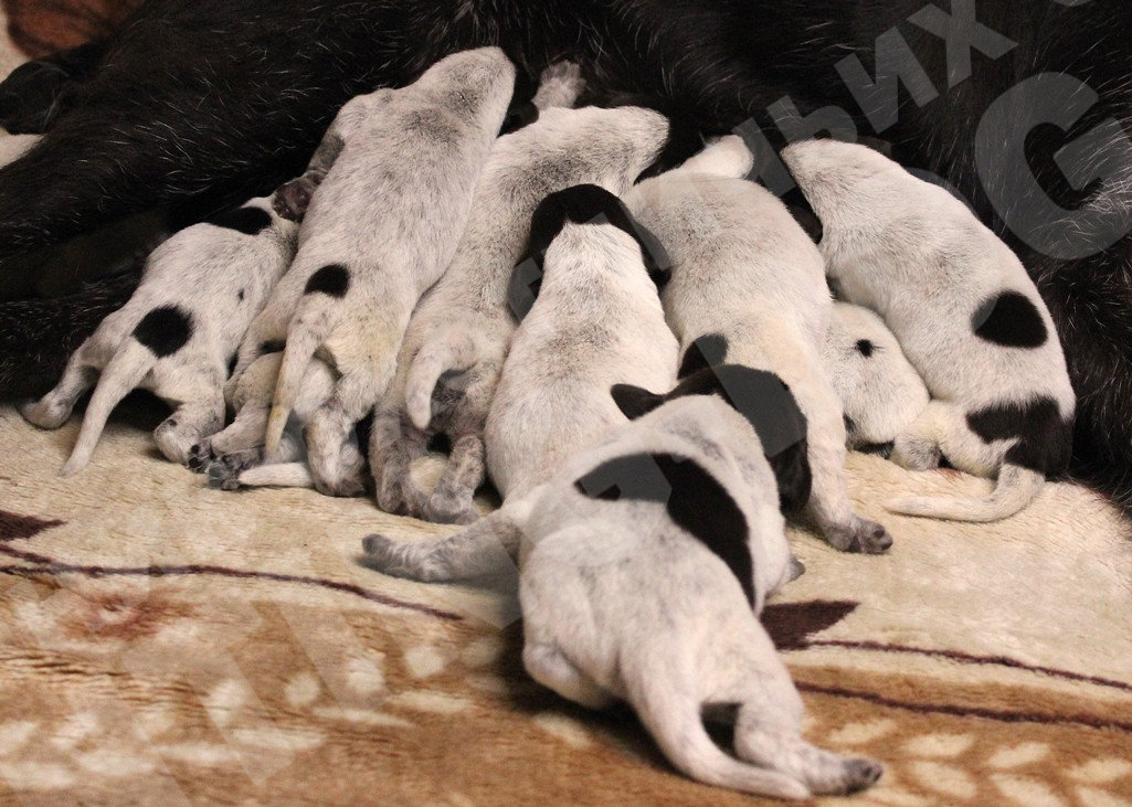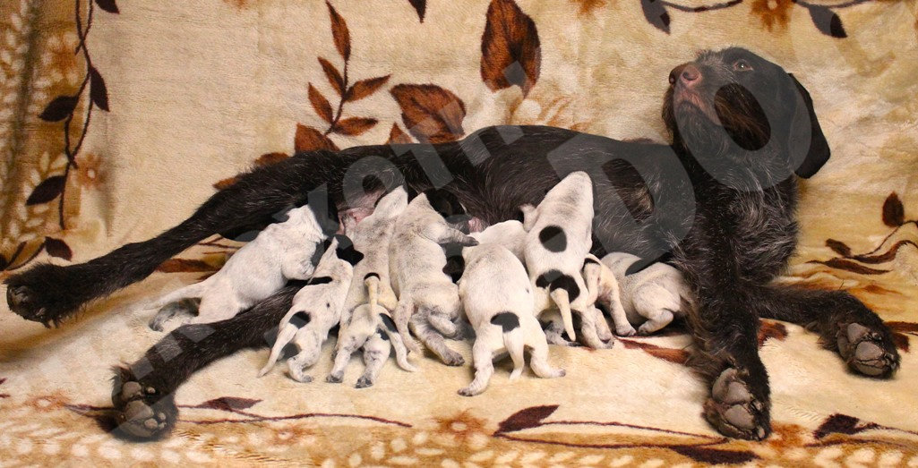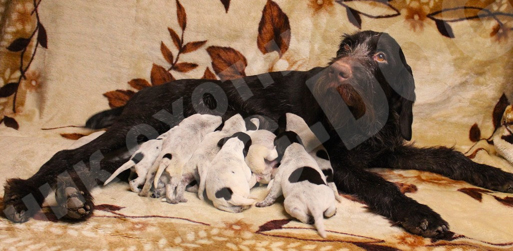 На свет появился долгожданный помёт щенков породы дратхаар в количестве 11шт, 6 мальчиков и 5 девочек. Отец щенков BRAX III VOM LIETHER-MOOR (Бракс III фом Литер-Моор - Германия) лучший кобель породы дратхаар в России, в настоящее время по мнению многих экспертов, рожденный в самом известном питомнике Германии. Мать Гретта vom Adlerhugel, дочь одного из самых известных и именитых кобелей породы дратхаар, когда-либо ввозимых в Россию Эйко ф.д. Картанэ (Eiko v.d.Karthane). Мать Гретты - Aki z Purkrabskeho Lesa (Аки с Пуркрабского леса – (импорт Чехия), правнучка легендарного Дарко из Эчтрингер-Форста (Darko vom Oechtringer-Forst) одного из самых титулованных кобелей породы дратхаар в Германии.
