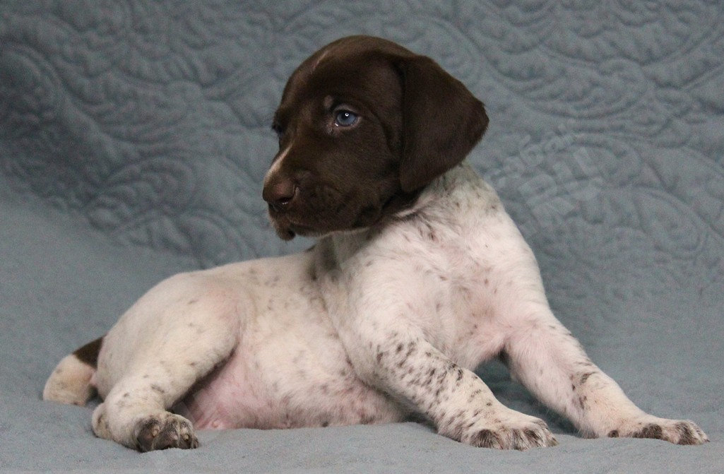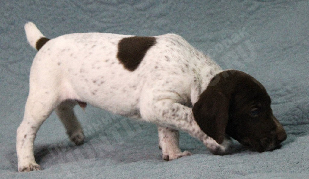 Породистый щенок из помета "П" породы дратхаар №8 кобель, цвет: коричнево-пегий, рождён 25.05.2025 г. в нашем питомнике vom Adlerhügel от великолепных родителей, одних из лучших предста..